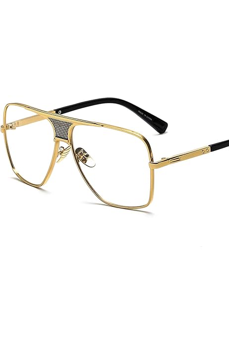 Amazon Com Flat Top Square Eyeglasses Men Metal Frame Glasses Men Accessories Gold With Clear Clothing