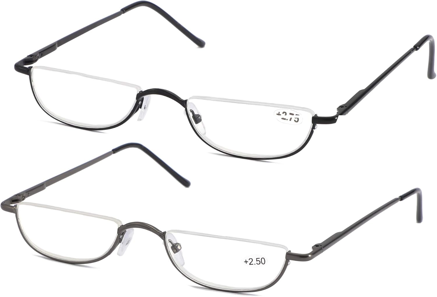 Amazon Com Soolala Vintage Designer Alloy Flat Top Half Frame Stylish Slim Reading Glasses Blackgun 1 0 Clothing