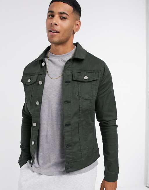 River Island River Island Denim Jacket In Dark Green Green Denim Jacket Denim Jacket Outfit Denim Jacket Men