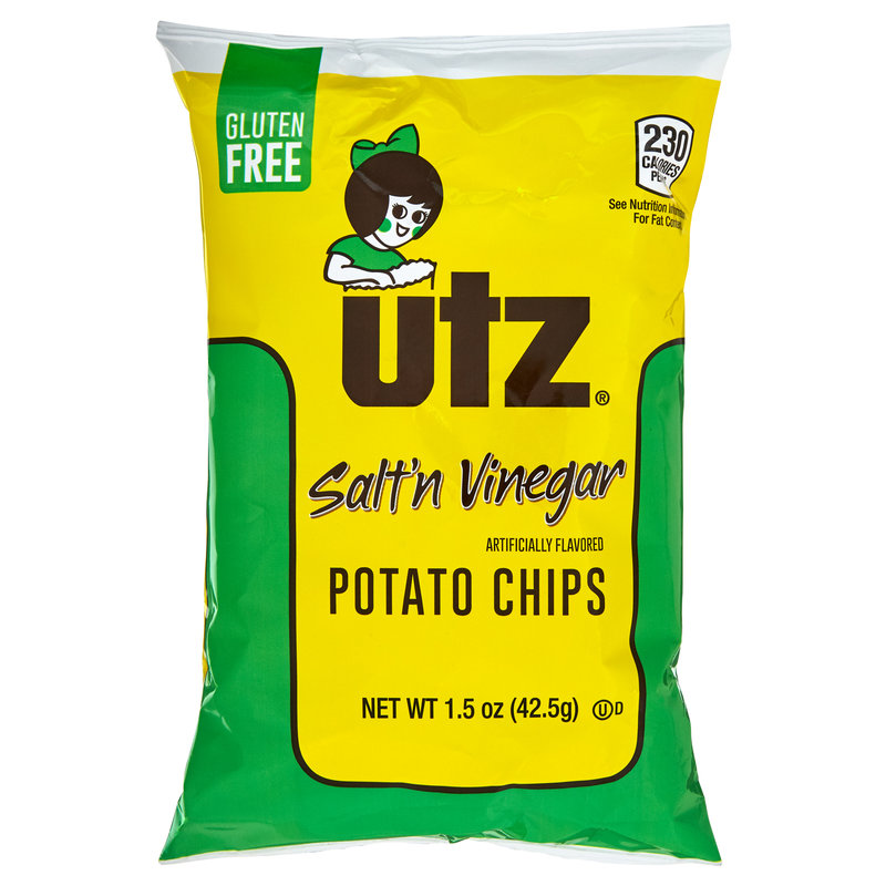 Personalized health review for Utz Potato Chips Salt n Vinegar. Their size makes them perfect for cafeterias at school or work for employees or students to purchase. We start with Utzs perfectly crispy freshly cooked potato chips and add our delicious salt and vinegar seasoning.