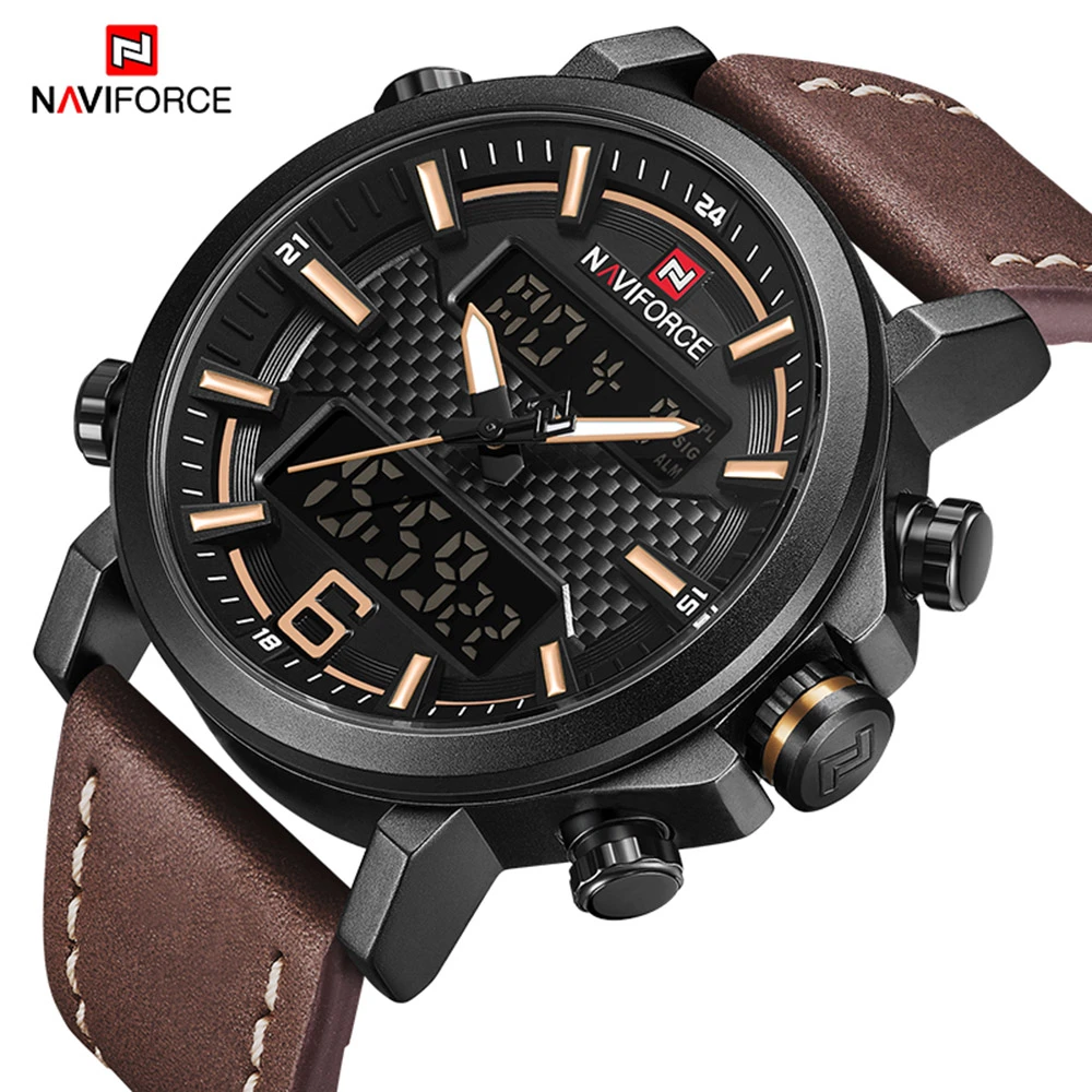 Naviforce Top Brand Luxury Mens Digital Watches Waterproof Sport Leather Band Watch With Alarm Dual Display Date Watch For Men Digital Watches Aliexpress