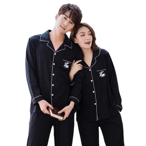Sleepwear Men Black Nightwear Long Sleeve Pajamas Sleeping Suit For Me Hesheonline