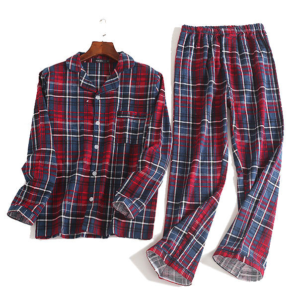 Cotton Comfortable Plaid Long Sleeve Casual Home Sleeping Pajamas Suit For Men