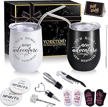 Amazon Com Housewarming Gifts New Home Gifts For Home House Warming Presents For Women Family Gifts Ideas For Couples New Home New Adventure New Memories Stemless Wine Glasses Couples Gifts Wine