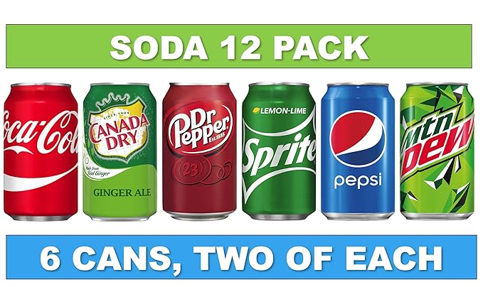Amazon Com Soda Variety Pack 12 Cans Bundle Of Coke Pepsi Cola Dr Pepper Mountain Dew Sprite And Canada Dry Ginger Ale Soft Drinks Mini Fridge Organizer Can Restock Kit Grocery
