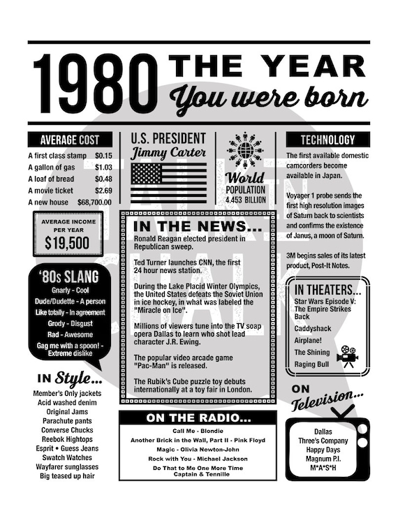 1980 The Year You Were Born Printable 1980 Printable Etsy