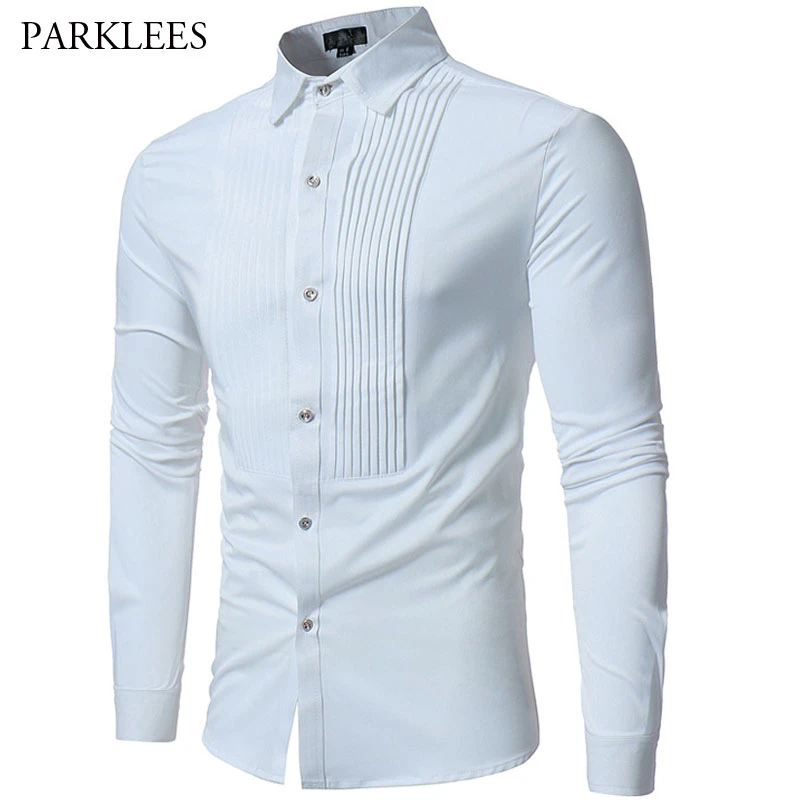 Mens Pleated Plain Shirt White Wedding Club Party Palace Prom Shirts Men Casual Slim Fit Chemise Homme Camisa Social Masculina Casual Shirts Aliexpress